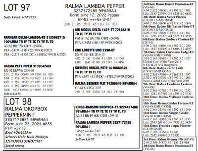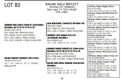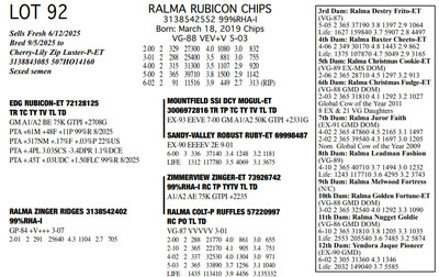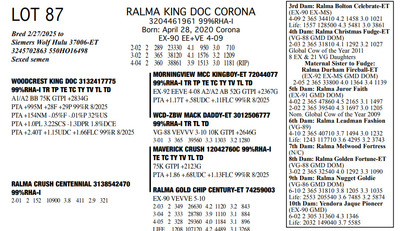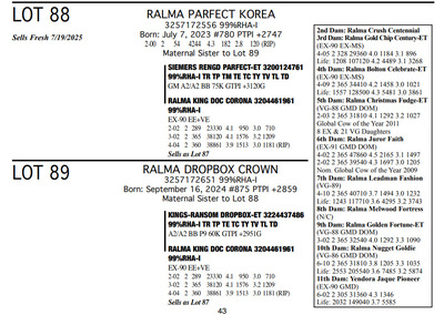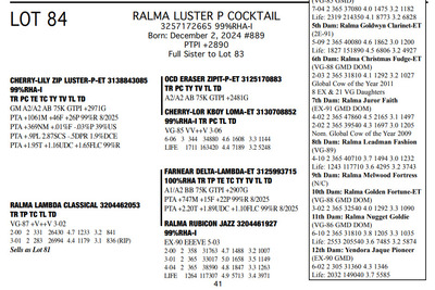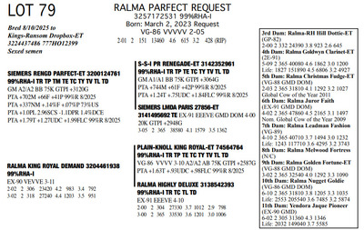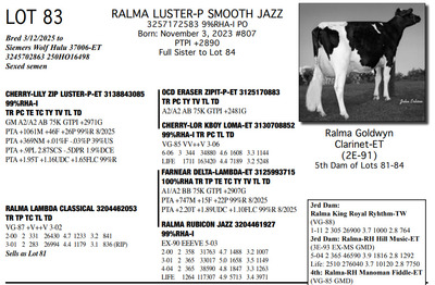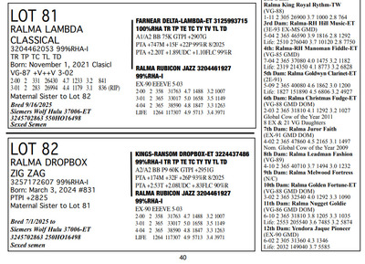 FAMILIES BUILT ON FAITH 16699 25th Ave NW , Rice MN, 56367 Great offering of genetics... Contact Agent: Aaron Ray Tompkins 336-363-4639 Catalog | Terms of Auction Download CATALOG Download SALE ORDER Download UPDATES Download ADDED LOT 175 Catalog | Terms Download CATALOG Download SALE ORDER Download UPDATES Download ADDED LOT 175 All Items (184) Cattle (184) Categories All Items (184) Cattle (184) Search Item #: Keyword: Search Catalog Item #: Keyword: 20 items per page 50 items per page 100 items per page Go to page #: 3 , 4 , 5 , 6 , 7 , 8 #79 – RALMA PARFECT REQUEST 3257172531 99%RHA-I Born: March 2, 2023 Request VG-86 VVVVV 2-05 2-01 2 151 13460 4.6 615 3.2 428 (RIP) Bred 8/10/2025 to Kings-Ransom Dropbox-ET 3224437486 777HO12399 Sexed semen Location: 16699 25th Ave NW , Rice MN, 56367 Contact Agent: Aaron Ray Tompkins 336-363-4639 More Info / Bid Now Track this Item Sold High Bid: $4,750.00 – #1022 #79 – RALMA PARFECT REQUEST Sold High Bid: $4,750 More Details More Info / Bid Track Item 3257172531 99%RHA-I Born: March 2, 2023 Request VG-86 VVVVV 2-05 2-01 2 151 13460 4.6 615 3.2 428 (RIP) Bred 8/10/2025 to Kings-Ransom Dropbox-ET 3224437486 777HO12399 Sexed semen Location: 16699 25th Ave NW , Rice MN, 56367 Contact Agent: Aaron Ray Tompkins 336-363-4639 #80 – RALMA HULU REFLECT 3204461231 99%RHA-I Born: April 13, 2025 #9300 PTPI +2881 Location: 16699 25th Ave NW , Rice MN, 56367 Contact Agent: Aaron Ray Tompkins 336-363-4639 More Info / Bid Now Track this Item Sold High Bid: $2,300.00 – #1061 #80 – RALMA HULU REFLECT Sold High Bid: $2,300 More Details More Info / Bid Track Item 3204461231 99%RHA-I Born: April 13, 2025 #9300 PTPI +2881 Location: 16699 25th Ave NW , Rice MN, 56367 Contact Agent: Aaron Ray Tompkins 336-363-4639 #81 – RALMA LAMBDA CLASSICAL 3204462053 99%RHA-I TR TP TC TL TD Born: November 1, 2021 Clasicl VG-87 +V++V 3-02 2-00 2 331 26430 4.7 1233 3.2 841 3-01 2 283 26994 4.4 1179 3.1 836 (RIP) Bred 9/16/2025 Siemers Wolf Hulu 37006-ET 3245702863 550HO16498 Sexed Semen Location: 16699 25th Ave NW , Rice MN, 56367 Contact Agent: Aaron Ray Tompkins 336-363-4639 More Info / Bid Now Track this Item Sold High Bid: $4,250.00 – #10 #81 – RALMA LAMBDA CLASSICAL Sold High Bid: $4,250 More Details More Info / Bid Track Item 3204462053 99%RHA-I TR TP TC TL TD Born: November 1, 2021 Clasicl VG-87 +V++V 3-02 2-00 2 331 26430 4.7 1233 3.2 841 3-01 2 283 26994 4.4 1179 3.1 836 (RIP) Bred 9/16/2025 Siemers Wolf Hulu 37006-ET 3245702863 550HO16498 Sexed Semen Location: 16699 25th Ave NW , Rice MN, 56367 Contact Agent: Aaron Ray Tompkins 336-363-4639 #82 – RALMA DROPBOX ZIG ZAG 3257172607 99%RHA-I Born: March 3, 2024 #831 PTPI +2825 Maternal Sister to Lot 81 Bred 7/1/2025 to Siemers Wolf Hulu 37006-ET 3245702863 250HO16498 Sexed semen Location: 16699 25th Ave NW , Rice MN, 56367 Contact Agent: Aaron Ray Tompkins 336-363-4639 More Info / Bid Now Track this Item Sold High Bid: $4,000.00 – #20 #82 – RALMA DROPBOX ZIG ZAG Sold High Bid: $4,000 More Details More Info / Bid Track Item 3257172607 99%RHA-I Born: March 3, 2024 #831 PTPI +2825 Maternal Sister to Lot 81 Bred 7/1/2025 to Siemers Wolf Hulu 37006-ET 3245702863 250HO16498 Sexed semen Location: 16699 25th Ave NW , Rice MN, 56367 Contact Agent: Aaron Ray Tompkins 336-363-4639 #83 – RALMA LUSTER-P SMOOTH JAZZ 3257172583 9%RHA-I PO Born: November 3, 2023 #807 PTPI +2890 Full Sister to Lot 84 Bred 3/12/2025 to Siemers Wolf Hulu 37006-ET 3245702863 250HO16498 Sexed semen Location: 16699 25th Ave NW , Rice MN, 56367 Contact Agent: Aaron Ray Tompkins 336-363-4639 More Info / Bid Now Track this Item Sold High Bid: $5,100.00 – #84 #83 – RALMA LUSTER-P SMOOTH JAZZ Sold High Bid: $5,100 More Details More Info / Bid Track Item 3257172583 9%RHA-I PO Born: November 3, 2023 #807 PTPI +2890 Full Sister to Lot 84 Bred 3/12/2025 to Siemers Wolf Hulu 37006-ET 3245702863 250HO16498 Sexed semen Location: 16699 25th Ave NW , Rice MN, 56367 Contact Agent: Aaron Ray Tompkins 336-363-4639 #84 – RALMA LUSTER P COCKTAIL 3257172665 99%RHA-I Born: December 2, 2024 #889 PTPI +2890 Full Sister to Lot 83 Location: 16699 25th Ave NW , Rice MN, 56367 Contact Agent: Aaron Ray Tompkins 336-363-4639 More Info / Bid Now Track this Item Sold High Bid: $3,400.00 – #55 #84 – RALMA LUSTER P COCKTAIL Sold High Bid: $3,400 More Details More Info / Bid Track Item 3257172665 99%RHA-I Born: December 2, 2024 #889 PTPI +2890 Full Sister to Lot 83 Location: 16699 25th Ave NW , Rice MN, 56367 Contact Agent: Aaron Ray Tompkins 336-363-4639 #85 – RALMA RUBICON CLOUD 3138542550 100%RHA-I TR TC TL TD Born: March 13, 2019 Cloud EX-90 EE+VE 5-03 2-02 2 302 24590 5.1 1258 3.2 794 3-02 2 365 37200 5.0 1846 3.2 1192 4-06 2 354 36280 4.9 1763 3.2 1160 5-08 2 295 32821 5.1 1671 3.1 1011 (RIP) LIFE 1091 103190 5.0 5136 3.2 3344 Bred 2/7/2025 to Siemers Wolf Hulu 37006-ET 3245702863 250HO16498 Sexed semen Location: 16699 25th Ave NW , Rice MN, 56367 Contact Agent: Aaron Ray Tompkins 336-363-4639 More Info / Bid Now Track this Item Sold High Bid: $3,800.00 – #34 #85 – RALMA RUBICON CLOUD Sold High Bid: $3,800 More Details More Info / Bid Track Item 3138542550 100%RHA-I TR TC TL TD Born: March 13, 2019 Cloud EX-90 EE+VE 5-03 2-02 2 302 24590 5.1 1258 3.2 794 3-02 2 365 37200 5.0 1846 3.2 1192 4-06 2 354 36280 4.9 1763 3.2 1160 5-08 2 295 32821 5.1 1671 3.1 1011 (RIP) LIFE 1091 103190 5.0 5136 3.2 3344 Bred 2/7/2025 to Siemers Wolf Hulu 37006-ET 3245702863 250HO16498 Sexed semen Location: 16699 25th Ave NW , Rice MN, 56367 Contact Agent: Aaron Ray Tompkins 336-363-4639 #86 – RALMA EYE-C COTTON 3257172574 99%RHA-I Born: September 29, 2023 #798 PTPI +2699 Bred 3/24/2025 to Siemers Cway Pace 36945-ET 3243347889 250HO16497 Location: 16699 25th Ave NW , Rice MN, 56367 Contact Agent: Aaron Ray Tompkins 336-363-4639 More Info / Bid Now Track this Item Sold High Bid: $4,200.00 – #47 #86 – RALMA EYE-C COTTON Sold High Bid: $4,200 More Details More Info / Bid Trac