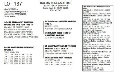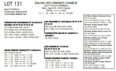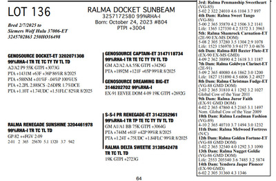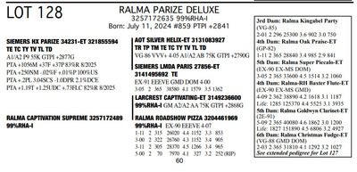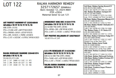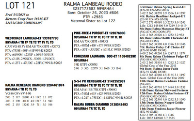 FAMILIES BUILT ON FAITH 16699 25th Ave NW , Rice MN, 56367 Great offering of genetics... Contact Agent: Aaron Ray Tompkins 336-363-4639 Catalog | Terms of Auction Download CATALOG Download SALE ORDER Download UPDATES Download ADDED LOT 175 Catalog | Terms Download CATALOG Download SALE ORDER Download UPDATES Download ADDED LOT 175 All Items (184) Cattle (184) Categories All Items (184) Cattle (184) Search Item #: Keyword: Search Catalog Item #: Keyword: 20 items per page 50 items per page 100 items per page Go to page #: 5 , 6 , 7 , 8 , 9 , 10 #119 – RALMA HARMONY MIDNIGHT 3257172595 99%RHA-I Born: December 10, 202 #819 PTPI +2982 Bred 3/8/2025 to Pen-Col Barkeep-ET 3242815804 507HO17418 Sexed semen Location: 16699 25th Ave NW , Rice MN, 56367 Contact Agent: Aaron Ray Tompkins 336-363-4639 More Info / Bid Now Track this Item Sold High Bid: $4,400.00 – #47 #119 – RALMA HARMONY MIDNIGHT Sold High Bid: $4,400 More Details More Info / Bid Track Item 3257172595 99%RHA-I Born: December 10, 202 #819 PTPI +2982 Bred 3/8/2025 to Pen-Col Barkeep-ET 3242815804 507HO17418 Sexed semen Location: 16699 25th Ave NW , Rice MN, 56367 Contact Agent: Aaron Ray Tompkins 336-363-4639 #120 – RALMA DELUXE SPORT 3257172598 99%RHA-I Born: December 28, 2023 #822 PTPI +2934 Bred 8/3/2025 to Siemers Applejax-ET 3267428980 507HO17431 Sexed semen Location: 16699 25th Ave NW , Rice MN, 56367 Contact Agent: Aaron Ray Tompkins 336-363-4639 More Info / Bid Now Track this Item Sold High Bid: $5,100.00 – #47 #120 – RALMA DELUXE SPORT Sold High Bid: $5,100 More Details More Info / Bid Track Item 3257172598 99%RHA-I Born: December 28, 2023 #822 PTPI +2934 Bred 8/3/2025 to Siemers Applejax-ET 3267428980 507HO17431 Sexed semen Location: 16699 25th Ave NW , Rice MN, 56367 Contact Agent: Aaron Ray Tompkins 336-363-4639 #121 – RALMA LAMBEAU RODEO 3257172582 99%RHA-I Born: October 26, 2023 #806 PTPI +2983 Maternal Sister to Lot 122Bred 5/3/2025 to Siemers Cway Pace 36945-ET 3243347889 250HO16497 Location: 16699 25th Ave NW , Rice MN, 56367 Contact Agent: Aaron Ray Tompkins 336-363-4639 More Info / Bid Now Track this Item Sold High Bid: $4,500.00 – #47 #121 – RALMA LAMBEAU RODEO Sold High Bid: $4,500 More Details More Info / Bid Track Item 3257172582 99%RHA-I Born: October 26, 2023 #806 PTPI +2983 Maternal Sister to Lot 122Bred 5/3/2025 to Siemers Cway Pace 36945-ET 3243347889 250HO16497 Location: 16699 25th Ave NW , Rice MN, 56367 Contact Agent: Aaron Ray Tompkins 336-363-4639 #122 – RALMA HARMONY REMEDY 3257172657 99%RHA-I Born: October 12, 2024 #881 PTPI +2934 Maternal Sister to Lot 121 Location: 16699 25th Ave NW , Rice MN, 56367 Contact Agent: Aaron Ray Tompkins 336-363-4639 More Info / Bid Now Track this Item Sold High Bid: $2,700.00 – #11 #122 – RALMA HARMONY REMEDY Sold High Bid: $2,700 More Details More Info / Bid Track Item 3257172657 99%RHA-I Born: October 12, 2024 #881 PTPI +2934 Maternal Sister to Lot 121 Location: 16699 25th Ave NW , Rice MN, 56367 Contact Agent: Aaron Ray Tompkins 336-363-4639 #123 – RALMA HANANS DASH 3257172562 99%RHA-I Born: July 25, 2023 #786 Dash 1-11 2 49 3751 4.7 175 3.2 120 (RIP) Sells Fresh 7/24/2025 Bred 9/16/2025 to MB-Luckylady Bullseye-ET 3234629819 200HO12370 Location: 16699 25th Ave NW , Rice MN, 56367 Contact Agent: Aaron Ray Tompkins 336-363-4639 More Info / Bid Now Track this Item Sold High Bid: $4,500.00 – #26 #123 – RALMA HANANS DASH Sold High Bid: $4,500 More Details More Info / Bid Track Item 3257172562 99%RHA-I Born: July 25, 2023 #786 Dash 1-11 2 49 3751 4.7 175 3.2 120 (RIP) Sells Fresh 7/24/2025 Bred 9/16/2025 to MB-Luckylady Bullseye-ET 3234629819 200HO12370 Location: 16699 25th Ave NW , Rice MN, 56367 Contact Agent: Aaron Ray Tompkins 336-363-4639 #124 – RALMA DOCKET GLISTEN 3257172581 99%RHA-I Born: October 25, 2023 #805 PTPI +2986 Bred 2/25/2025 to Kings-Ransom Cartel-ET 3254482956 200HO13054 Location: 16699 25th Ave NW , Rice MN, 56367 Contact Agent: Aaron Ray Tompkins 336-363-4639 More Info / Bid Now Track this Item Sold High Bid: $4,500.00 – #11 #124 – RALMA DOCKET GLISTEN Sold High Bid: $4,500 More Details More Info / Bid Track Item 3257172581 99%RHA-I Born: October 25, 2023 #805 PTPI +2986 Bred 2/25/2025 to Kings-Ransom Cartel-ET 3254482956 200HO13054 Location: 16699 25th Ave NW , Rice MN, 56367 Contact Agent: Aaron Ray Tompkins 336-363-4639 #125 – RALMA LUSTER-P CLIP 3257172542 99%RHA-I Born: May 7, 2023 Clip VG-85 VVVV+ 2-03 2-00 2 106 7701 4.5 350 3.0 231 (RIP) Bred 7/30/2025 to Kings-Ransom Dropbox-ET 3224437486 777HO12399 Sexed semen Location: 16699 25th Ave NW , Rice MN, 56367 Contact Agent: Aaron Ray Tompkins 336-363-4639 More Info / Bid Now Track this Item No Bids Starting at $1,500.00 Login to Bid #125 – RALMA LUSTER-P CLIP Starting at $1,500.00 Login to Bid More Details More Info / Bid Track Item 3257172542 99%RHA-I Born: May 7, 2023 Clip VG-85 VVVV+ 2-03 2-00 2 106 7701 4.5 350 3.0 231 (RIP) Bred 7/30/2025 to Kings-Ransom Dropbox-ET 3224437486 777HO12399 Sexed semen Location: 16699 25th Ave NW , Rice MN, 56367 Contact Agent: Aaron Ray Tompkins 336-363-4639 #126 – RALMA HARMONY CAMEO 3257172586 99%RHA-I Born: November 20, 2023 #810 PTPI +2719 Bred 2/22/2025 to Kings-Ransom Cartel-ET 3254482956 200HO13054 Location: 16699 25th Ave NW , Rice MN, 56367 Contact Agent: Aaron Ray Tompkins 336-363-4639 More Info / Bid Now Track this Item Sold High Bid: $4,400.00 – #47 #126 – RALMA HARMONY CAMEO Sold High Bid: $4,400 More Details More Info / Bid Track Item 3257172586 99%RHA-I Born: November 20, 2023 #810 PTPI +2719 Bred 2/22/2025 to Kings-Ransom Cartel-ET 3254482956 200HO13054 Location: 16699 25th Ave NW , Rice MN, 56367 Contact Agent: Aaron Ray Tompkins 336-363-4639 #127 – RALMA ROADSHOW PIZZA 3204461969 99%RHA-I Born: June 21, 2020 Pizza EX-90 EEEVE 4-07 1-11 2 315 26020 4.4 1152 3.3 853 3-00 2 322 26760 4.3 1152 3.4 905 3-11 2 305 28370 4.5 1266 3.4 965 5-00 2 70 7970 4.1 327 3.2 252 (RIP) Sells Fresh 7/3/2025 Bred 9