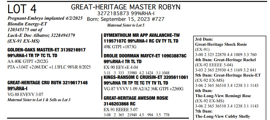 Maternal Sister to Lot 5 Pregnant-Embryo implanted 4/2/2025