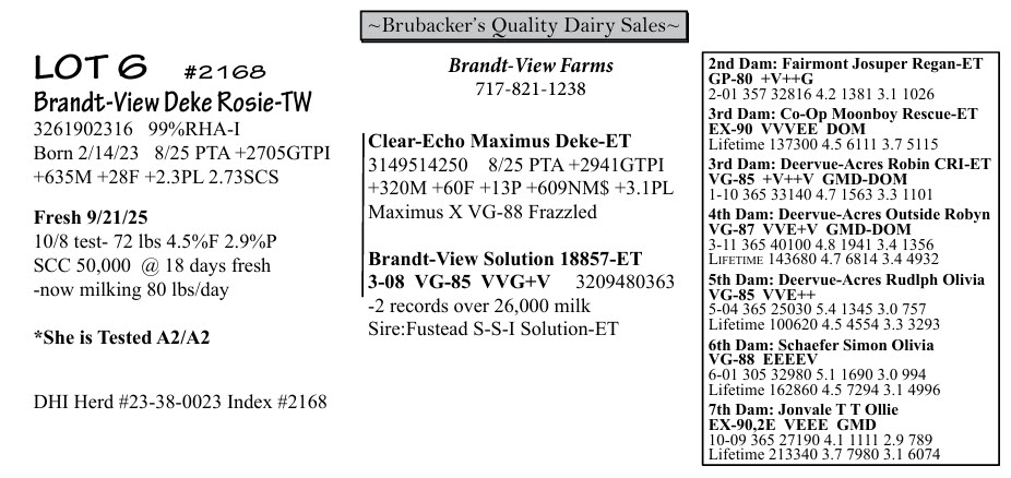 BRUBACKER'S October Monthly Production Sale