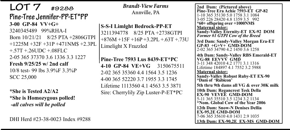 BRUBACKER'S October Monthly Production Sale