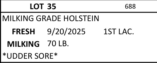 BRUBACKER'S October Monthly Production Sale