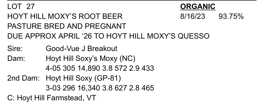 DUE APPROX APRIL ‘26 TO HOYT HILL MOXY’S QUESSO