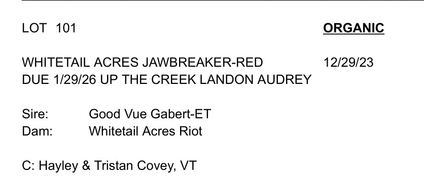 12/29/2023 DUE 1/29/26 UP THE CREEK LANDON AUDREY