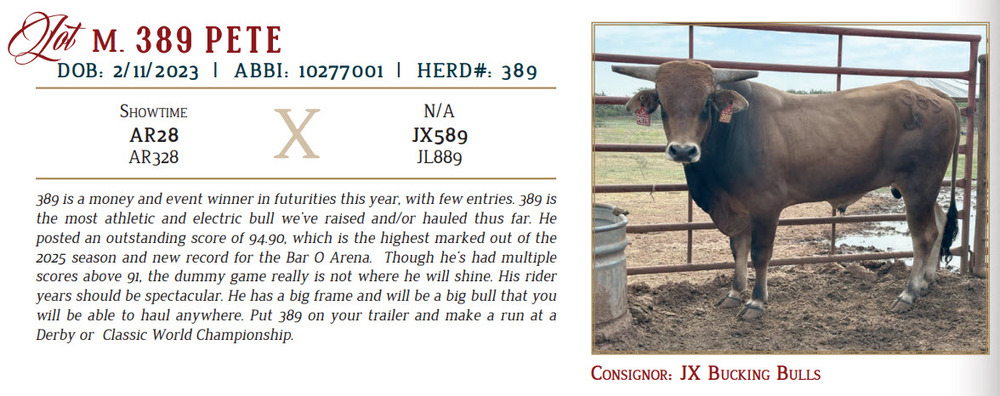 389 is a money and event winner in futurities this year, with few entries. 389 is