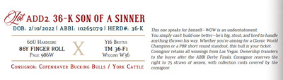 This one speaks for himself—WOW is an understatement. You simply can’t build one better—he’s big, stout, and bred to handle anything thrown his way. Whether you’re aiming for a Classic World Champion or a PBR short round standout, this bull is your ticket. Consignor retains all winnings from Las Vegas. Ownership transfers to the buyer after the ABBI Derby Finals. Consignor reserves the right to 75 straws of semen, with collection costs covered by the consignor.