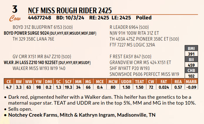 Dark red, pigmented heifer with a Walker dam. This heifer has the genetics to be a