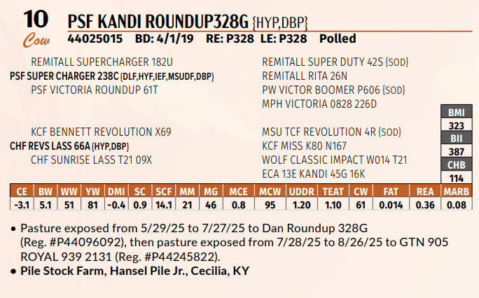 (Reg. #P44096092), then pasture exposed from 7/28/25 to 8/26/25 to GTN 905