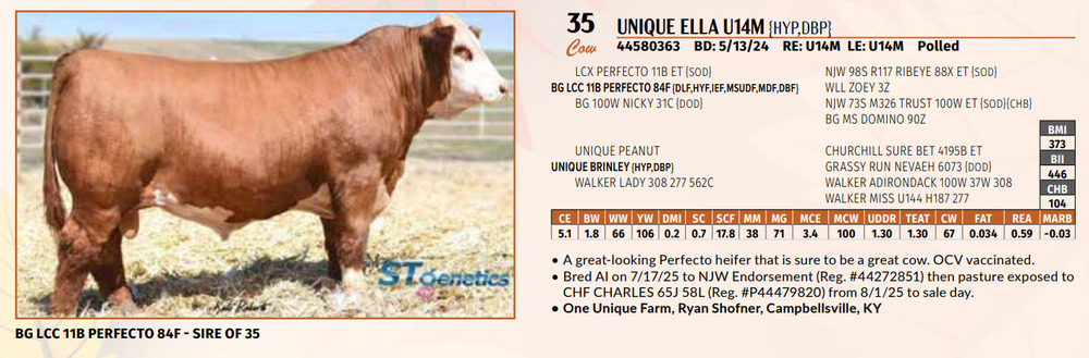 Bred AI on 7/17/25 to NJW Endorsement (Reg. #44272851) then pasture exposed to CHF CHARLES 65J 58L (Reg. #P44479820) from 8/1/25 to sale day.