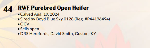 Sells open. DRS Herefords, David Smith, Guston, KY