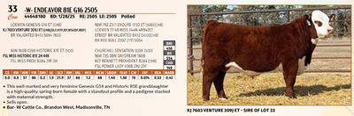 The sire’s CE is in the top 5%, BW is in the top 7%, and he exhibits