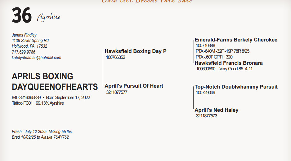 OHIO AYRSHIRE FALL ALL BREEDS SALE