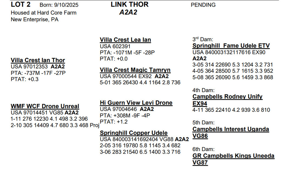 -Selling price is per Embryo or Straw of semen unless otherwise stated