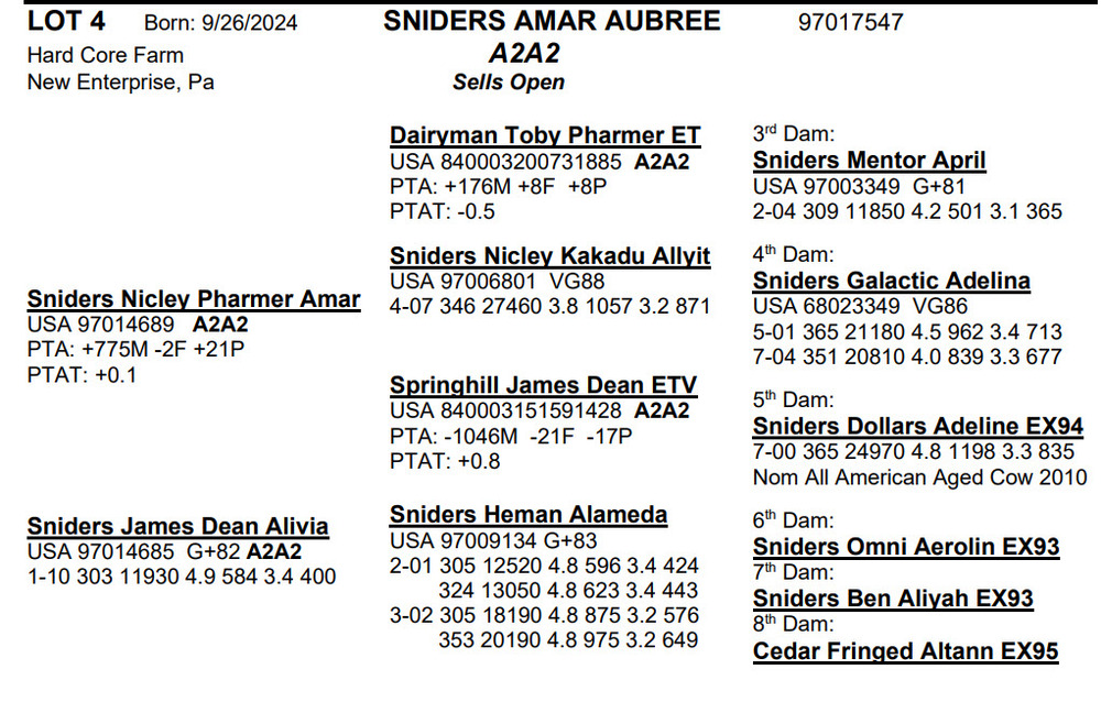 -Selling price is per Embryo or Straw of semen unless otherwise stated