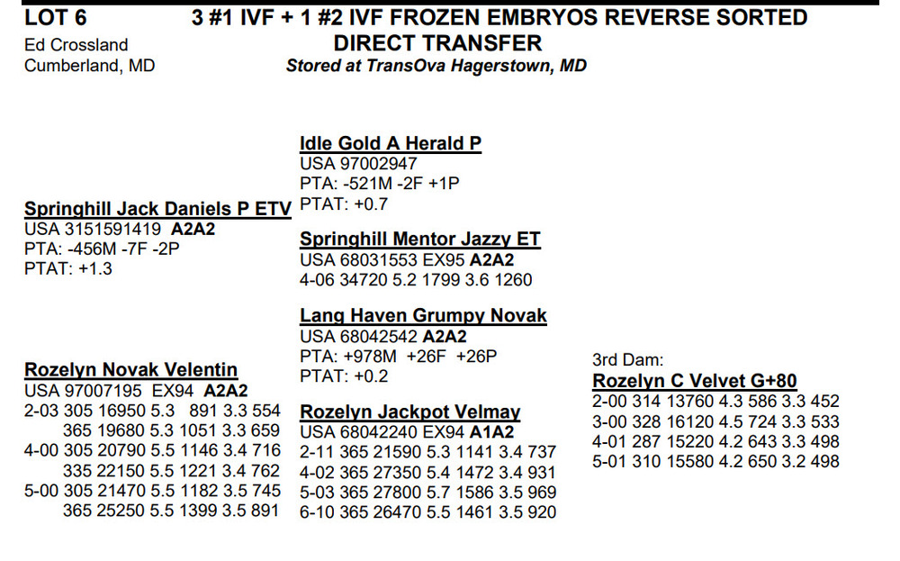 -Selling price is per Embryo or Straw of semen unless otherwise stated