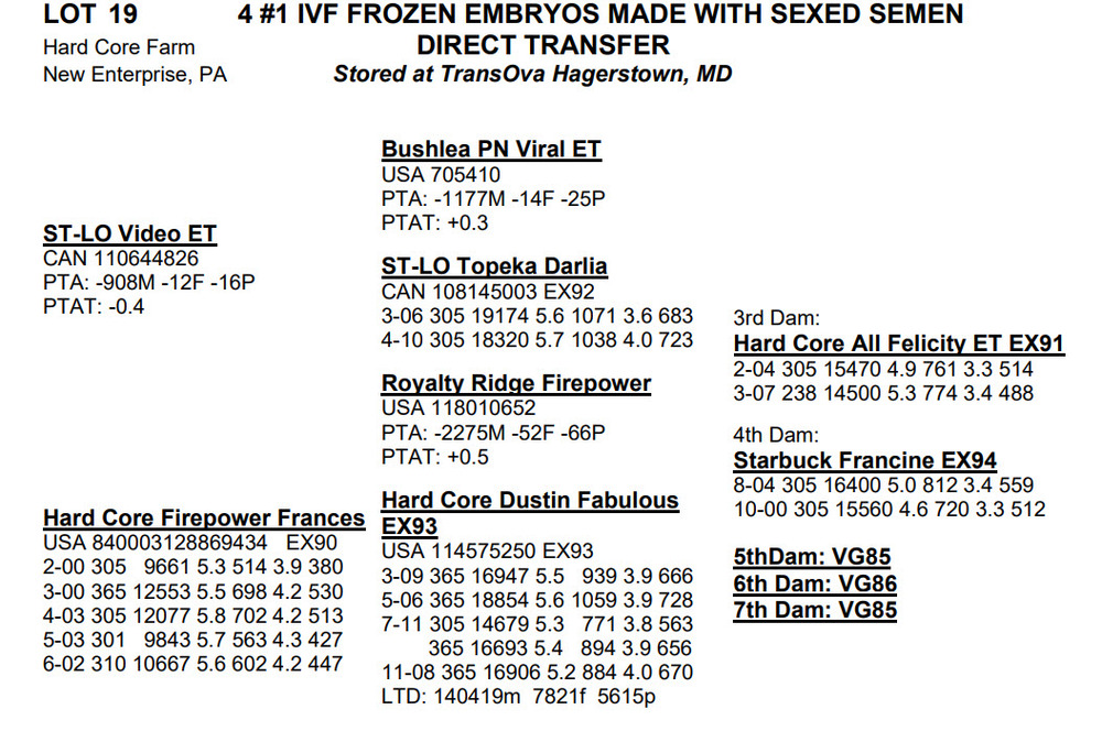 -Selling price is per Embryo or Straw of semen unless otherwise stated