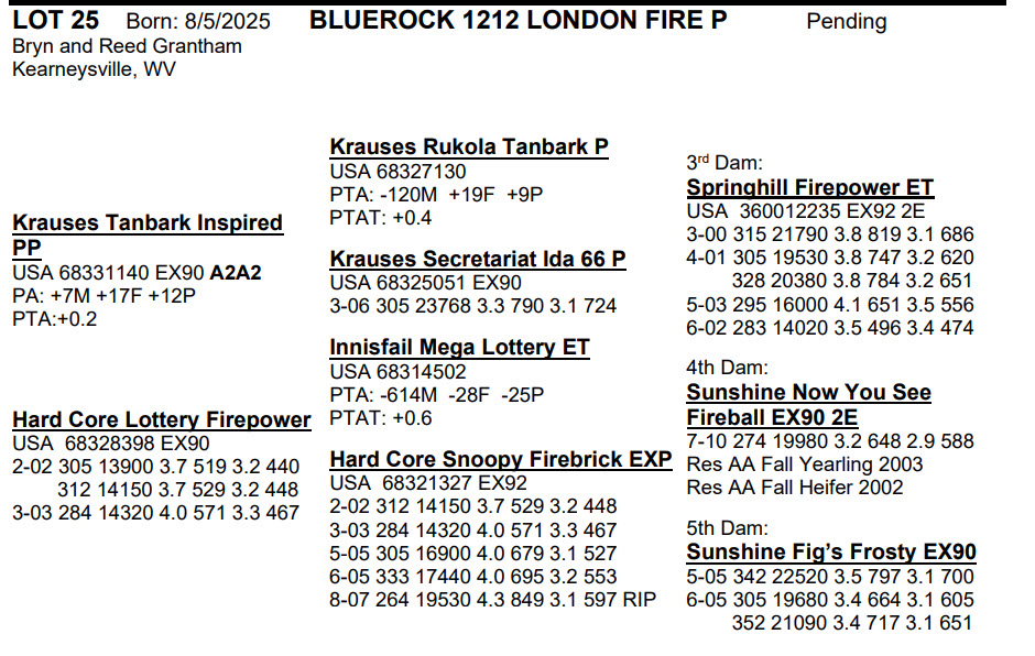 -Selling price is per Embryo or Straw of semen unless otherwise stated