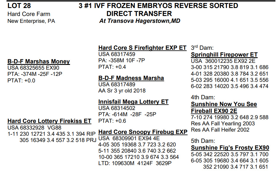 -Selling price is per Embryo or Straw of semen unless otherwise stated