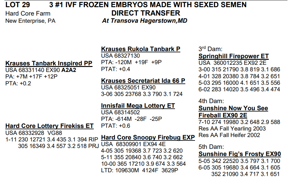 -Selling price is per Embryo or Straw of semen unless otherwise stated