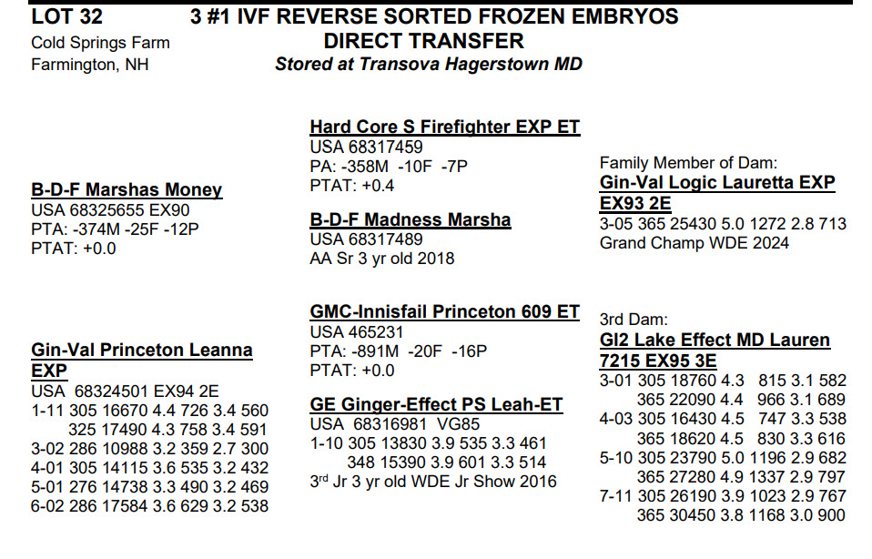 -Selling price is per Embryo or Straw of semen unless otherwise stated