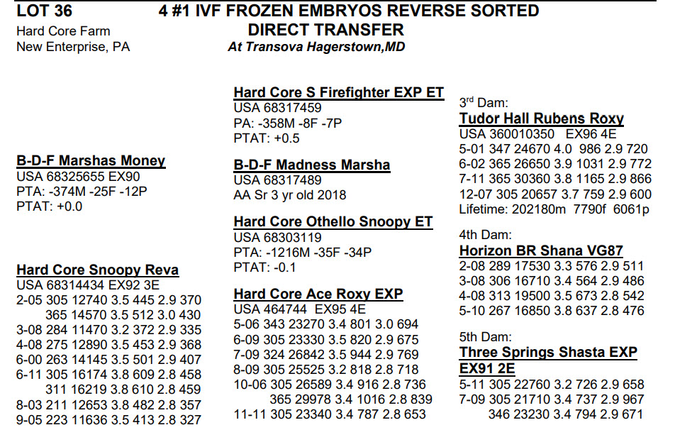 -Selling price is per Embryo or Straw of semen unless otherwise stated