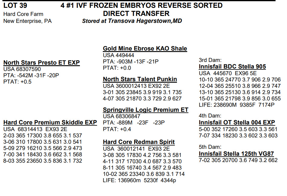 -Selling price is per Embryo or Straw of semen unless otherwise stated