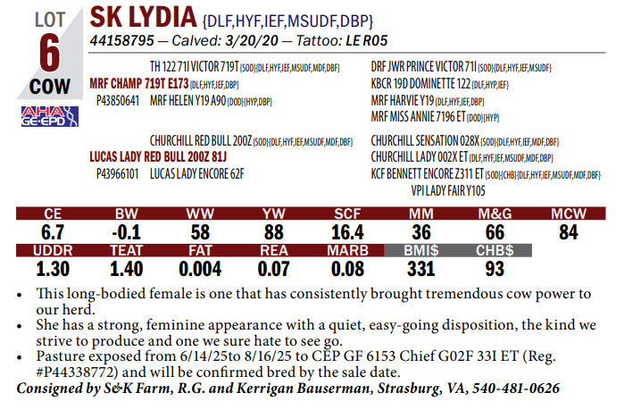 44158795 — Calved: 3/20/20 — Tattoo: LE R05 This long-bodied female is one that has consistently brought tremendous cow power to