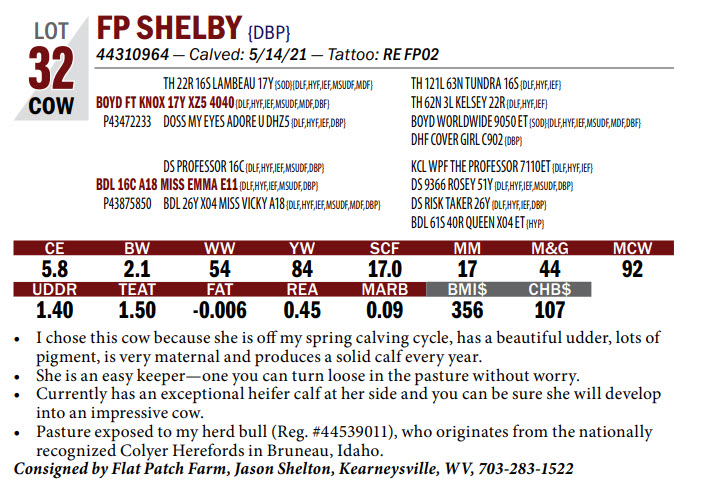 44310964 — Calved: 5/14/21 — Tattoo: RE FP02 I chose this cow because she is off my spring calving cycle, has a beautiful udder, lots of
