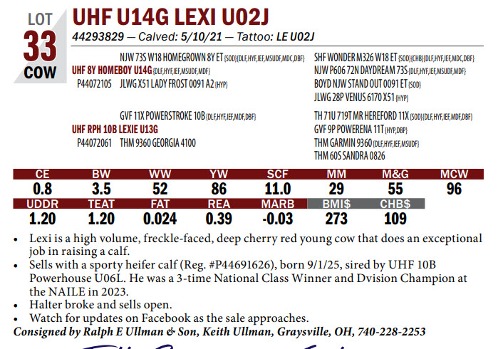Sells with a sporty heifer calf (Reg. #P44691626), born 9/1/25, sired by UHF 10B