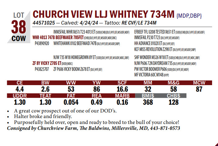 44571025 — Calved: 4/24/24 — Tattoo: RE CVF/LE 734M A great cow prospect out of one of our DOD’s.
