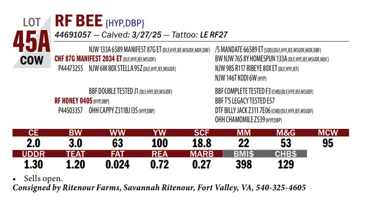 44691057 — Calved: 3/27/25 — Tattoo: LE RF27 Sells open