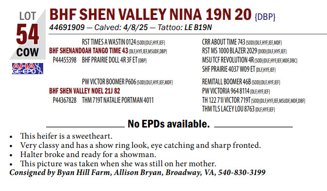 44691909 — Calved: 4/8/25 — Tattoo: LE B19N This heifer is a sweetheart.