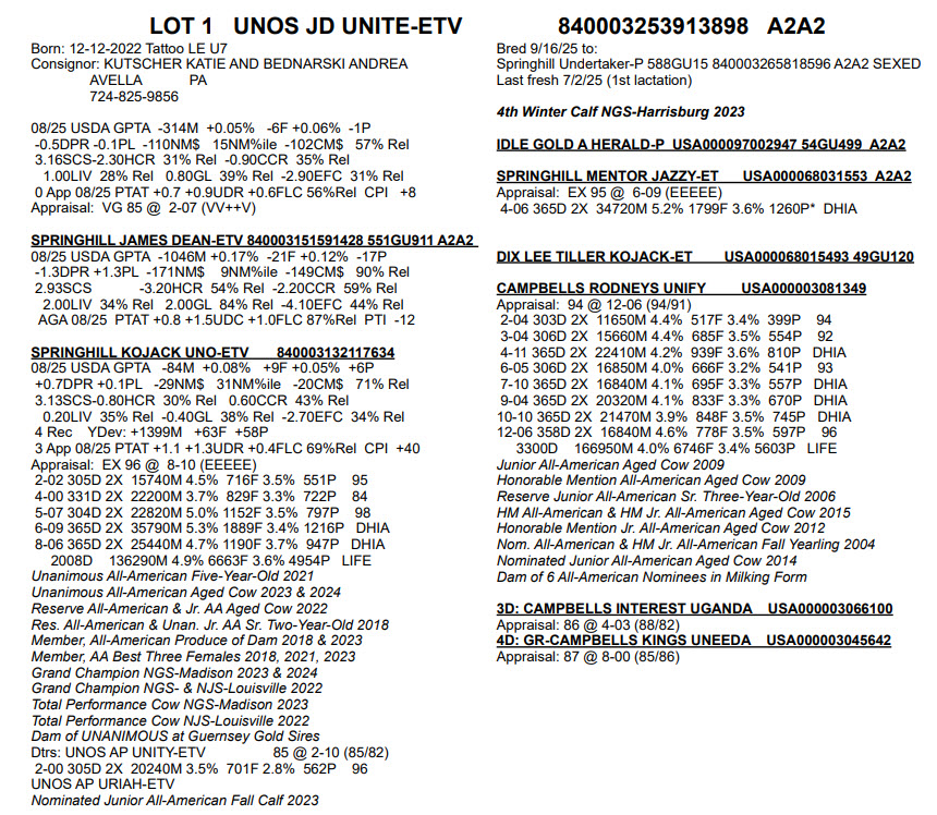 Appraisal: VG 85 @ 2-07 (VV++V) Bred 9/16/25 to: