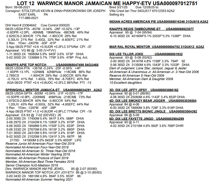 Consignor: STOLTZFUS KEVIN & DINA+PISKOROWSKI DR JOSEPH