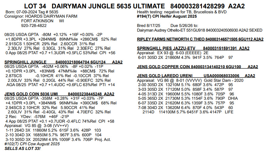 0 App 08/25 PTAT +0.7 +1.3UDR +0.5FLC 53%Rel CPI +56 Health testing: negative for TB, Brucellosis & BVD