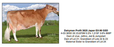 Born: 09-07-2021 Consignor: WOLFF ELSIE & STOLTZFUS KEVIN QUARRYVILLE PA 717-989-0521 DHI Herd # 23364642 Cow Control 000033 08/25 USDA PTA -321M -0.05% -23F +0.04% -5P +0.4DPR +1.5PL -82NM$ 21NM%ile -77CM$ 40% Rel 3.05SCS-1.40HCR 12% Rel 0.00CCR 17% Rel 0.50LIV 12% Rel 1.00GL 18% Rel -0.90EFC 13% Rel 2 Rec YDev: -425M -54F +7P 3 App 08/25 PTAT +0.4 +0.2UDR -0.4FLC 47%Rel CPI -25 Appraisal: VG 85 @ 3-05 (VV+V+) 2-00 311D 2X 17840M 5.1% 911F 3.5% 616P 97 3-00 329D 2X 19090M 5.4% 1031F 3.8% 721P 96 A2A2 by parentage Fresh 10/6/25 (3rd lactation) Selling open