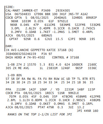 RANKS AMONG THE TOP 500 GJPI FEMALES IN THE BREED