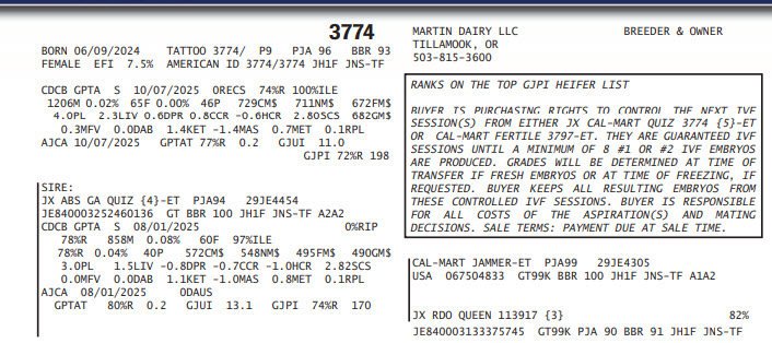 3774-RANKS ON THE TOP GJPI HEIFER LIST