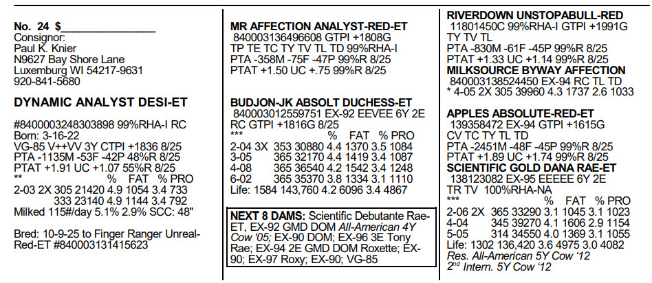 Milked 115#/day 5.1% 2.9% SCC: 48"