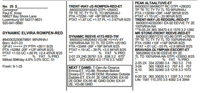 The BARRON FALL SALE 2025 120 N. 3rd Street, Barron WI, 54812 Great offering of genetics... Contact Agent: Aaron Ray Tompkins 336-363-4639 Catalog | Terms of Auction Download CATALOG Download ADDED LOTS PAGE 1 Download ADDED LOTS PAGE 2 Download ADDED LOTS PAGE 3 Catalog | Terms Download CATALOG Download ADDED LOTS PAGE 1 Download ADDED LOTS PAGE 2 Download ADDED LOTS PAGE 3 All Items (132) Cattle (102) Embryos (12) Semen (18) Categories All Items (132) Cattle (102) Embryos (12) Semen (18) Search Item #: Keyword: Search Catalog Item #: Keyword: 20 items per page 50 items per page 100 items per page Go to page #: 1 , 2 , 3 , 4 , 5 , 6 #14S – Regancrest Elton Durham-ET Regancrest Elton Durham-ET Location: 120 N. 3rd Street, Barron WI, 54812 Contact Agent: Aaron Ray Tompkins 336-363-4639 More Info / Bid Now Track this Item Sold High Bid: $60.00 – #34 Auction Type: Quantity x Price Quantity: 8 #14S – Regancrest Elton Durham-ET Quantity x PriceQuantity: 8 Sold High Bid: $60 More Details More Info / Bid Track Item Regancrest Elton Durham-ET Location: 120 N. 3rd Street, Barron WI, 54812 Contact Agent: Aaron Ray Tompkins 336-363-4639 #15 – OBRIEN DOC AWAY #840003255829264 99%RHA-I TR TP TC TL TD Born: 11-25-23 GTPI +2387G 8/25 PTA -581M -1F -12P 81%R 8/25 PTAT +1.68 UC +1.03 81%R 8/25 Due: 11-7-25 to Angus Location: 120 N. 3rd Street, Barron WI, 54812 Contact Agent: Aaron Ray Tompkins 336-363-4639 More Info / Bid Now Track this Item Sold High Bid: $2,800.00 – #19 #15 – OBRIEN DOC AWAY Sold High Bid: $2,800 More Details More Info / Bid Track Item #840003255829264 99%RHA-I TR TP TC TL TD Born: 11-25-23 GTPI +2387G 8/25 PTA -581M -1F -12P 81%R 8/25 PTAT +1.68 UC +1.03 81%R 8/25 Due: 11-7-25 to Angus Location: 120 N. 3rd Street, Barron WI, 54812 Contact Agent: Aaron Ray Tompkins 336-363-4639 #15S – KHW Elm-Park Acme-ET RC KHW Elm-Park Acme-ET RC Location: 120 N. 3rd Street, Barron WI, 54812 Contact Agent: Aaron Ray Tompkins 336-363-4639 More Info / Bid Now Track this Item Sold High Bid: $10.00 – #10 Auction Type: Quantity x Price Quantity: 5 #15S – KHW Elm-Park Acme-ET RC Quantity x PriceQuantity: 5 Sold High Bid: $10 More Details More Info / Bid Track Item KHW Elm-Park Acme-ET RC Location: 120 N. 3rd Street, Barron WI, 54812 Contact Agent: Aaron Ray Tompkins 336-363-4639 #16 – AL-SAL ARCANA-RED Born: 6-06-23 GP-84 ++V++ 2Y PTPI +2242 8/25 PTA -1014M -32F -22P 44%R 8/25 PTAT +2.17 UC +1.52 44%R 8/25 *** % FAT % PRO 1-11 2X 112 7159 3.4%F 3.0%P” Milked 74#/day SCC: 38" Bred: 9-6-25 to SHG Lazer-ET RC #717630582 DNK Location: 120 N. 3rd Street, Barron WI, 54812 Contact Agent: Aaron Ray Tompkins 336-363-4639 More Info / Bid Now Track this Item Sold High Bid: $2,750.00 – #82 #16 – AL-SAL ARCANA-RED Sold High Bid: $2,750 More Details More Info / Bid Track Item Born: 6-06-23 GP-84 ++V++ 2Y PTPI +2242 8/25 PTA -1014M -32F -22P 44%R 8/25 PTAT +2.17 UC +1.52 44%R 8/25 *** % FAT % PRO 1-11 2X 112 7159 3.4%F 3.0%P” Milked 74#/day SCC: 38" Bred: 9-6-25 to SHG Lazer-ET RC #717630582 DNK Location: 120 N. 3rd Street, Barron WI, 54812 Contact Agent: Aaron Ray Tompkins 336-363-4639 #16S – Valleyriver Joyboy-Red Valleyriver Joyboy-Red Location: 120 N. 3rd Street, Barron WI, 54812 Contact Agent: Aaron Ray Tompkins 336-363-4639 More Info / Bid Now Track this Item Sold High Bid: $5.00 – #86 Auction Type: Quantity x Price Quantity: 6 #16S – Valleyriver Joyboy-Red Quantity x PriceQuantity: 6 Sold High Bid: $5 More Details More Info / Bid Track Item Valleyriver Joyboy-Red Location: 120 N. 3rd Street, Barron WI, 54812 Contact Agent: Aaron Ray Tompkins 336-363-4639 #17 – OBRIEN MOONRAKER PEEWEE #840003255829265 99%RHA-I Born: 11-27-23 TR TP TC TL TD GTPI +2270G 8/25 PTA -2094M -33F -37P 80%R 8/25 PTAT +2.50 UC +1.65 78%R 8/25 Due: 11-7-25 Location: 120 N. 3rd Street, Barron WI, 54812 Contact Agent: Aaron Ray Tompkins 336-363-4639 More Info / Bid Now Track this Item Sold High Bid: $1,600.00 – #1067 #17 – OBRIEN MOONRAKER PEEWEE Sold High Bid: $1,600 More Details More Info / Bid Track Item #840003255829265 99%RHA-I Born: 11-27-23 TR TP TC TL TD GTPI +2270G 8/25 PTA -2094M -33F -37P 80%R 8/25 PTAT +2.50 UC +1.65 78%R 8/25 Due: 11-7-25 Location: 120 N. 3rd Street, Barron WI, 54812 Contact Agent: Aaron Ray Tompkins 336-363-4639 #17S – Lutz-Meadows Mandel-ET Lutz-Meadows Mandel-ET Location: 120 N. 3rd Street, Barron WI, 54812 Contact Agent: Aaron Ray Tompkins 336-363-4639 More Info / Bid Now Track this Item Sold High Bid: $10.00 – #86 Auction Type: Quantity x Price Quantity: 10 #17S – Lutz-Meadows Mandel-ET Quantity x PriceQuantity: 10 Sold High Bid: $10 More Details More Info / Bid Track Item Lutz-Meadows Mandel-ET Location: 120 N. 3rd Street, Barron WI, 54812 Contact Agent: Aaron Ray Tompkins 336-363-4639 #18 – BWFW-AB ALL NTE LONG-RED-ET #840003208772447 99%RHA-I Born; 12-02-23 GTPI +2230G 8/25 PTA -1444M -12F -29P 82%R 8/25 PTAT +1.68 UC +1.24 82%R 8/25 Due: 12-27-25 to Farnear Architect-ET #840003214251590 (sexed) Location: 120 N. 3rd Street, Barron WI, 54812 Contact Agent: Aaron Ray Tompkins 336-363-4639 More Info / Bid Now Track this Item Sold High Bid: $3,800.00 – #500 #18 – BWFW-AB ALL NTE LONG-RED-ET Sold High Bid: $3,800 More Details More Info / Bid Track Item #840003208772447 99%RHA-I Born; 12-02-23 GTPI +2230G 8/25 PTA -1444M -12F -29P 82%R 8/25 PTAT +1.68 UC +1.24 82%R 8/25 Due: 12-27-25 to Farnear Architect-ET #840003214251590 (sexed) Location: 120 N. 3rd Street, Barron WI, 54812 Contact Agent: Aaron Ray Tompkins 336-363-4639 #18S – Llindenright Moovin-ET RC (sexed) Llindenright Moovin-ET RC (sexed) Location: 120 N. 3rd Street, Barron WI, 54812 Contact Agent: Aaron Ray Tompkins 336-363-4639 More Info / Bid Now Track this Item Sold High Bid: $115.00 – #1034 Auction Type: Quantity x Price Quantity: 5 #18S – Llindenright Moovin-ET RC (sexed) Quantity x PriceQuantity: 5 Sold High Bid: $115 More Details More Info / Bid Track Item Llindenright Moovin-ET RC (sexed) 