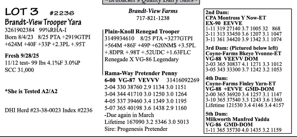 BRUBACKER'S NOVEMBER Monthly Production Sale