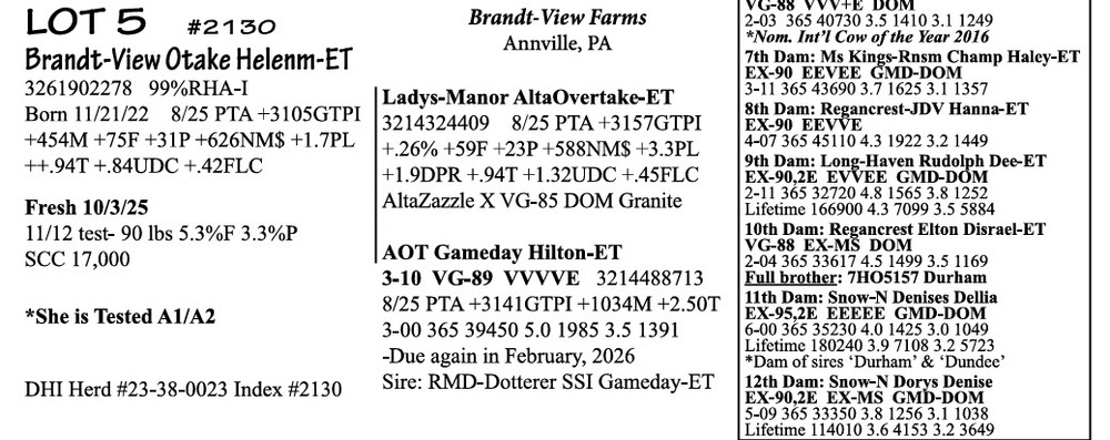 BRUBACKER'S NOVEMBER Monthly Production Sale
