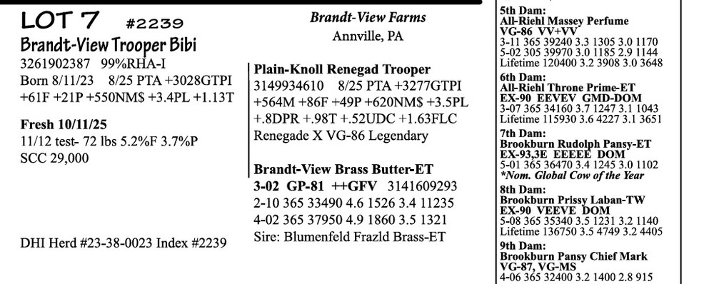 BRUBACKER'S NOVEMBER Monthly Production Sale