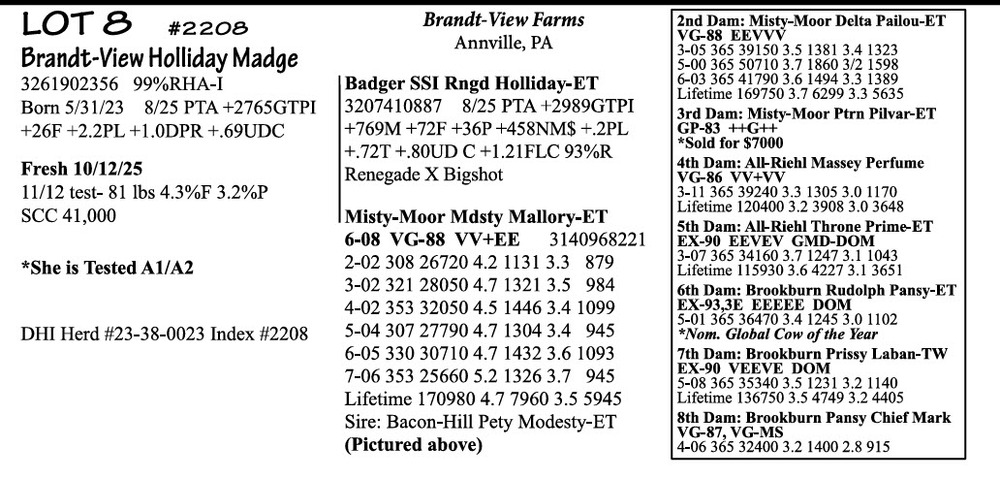 BRUBACKER'S NOVEMBER Monthly Production Sale