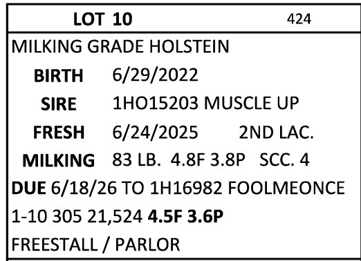 BRUBACKER'S NOVEMBER Monthly Production Sale