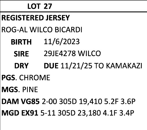 BRUBACKER'S NOVEMBER Monthly Production Sale
