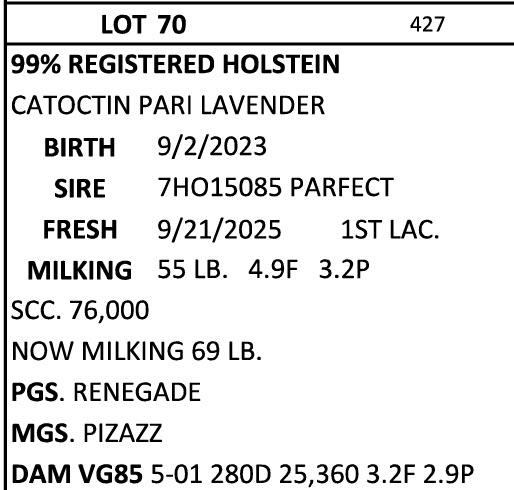 BRUBACKER'S NOVEMBER Monthly Production Sale