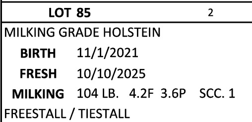 BRUBACKER'S NOVEMBER Monthly Production Sale