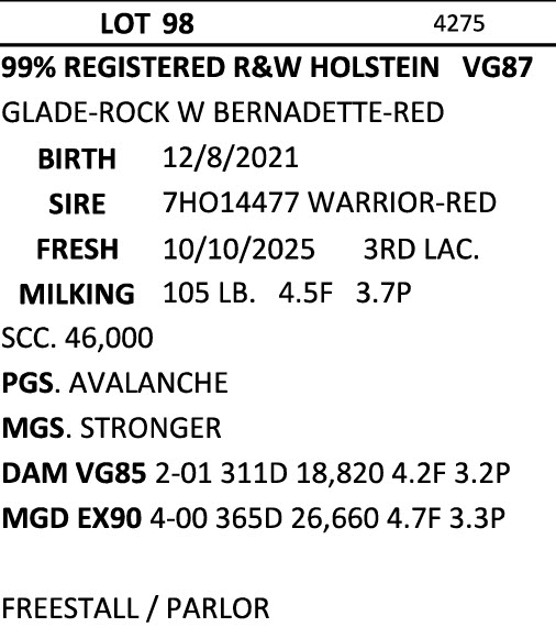 BRUBACKER'S NOVEMBER Monthly Production Sale