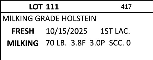 BRUBACKER'S NOVEMBER Monthly Production Sale